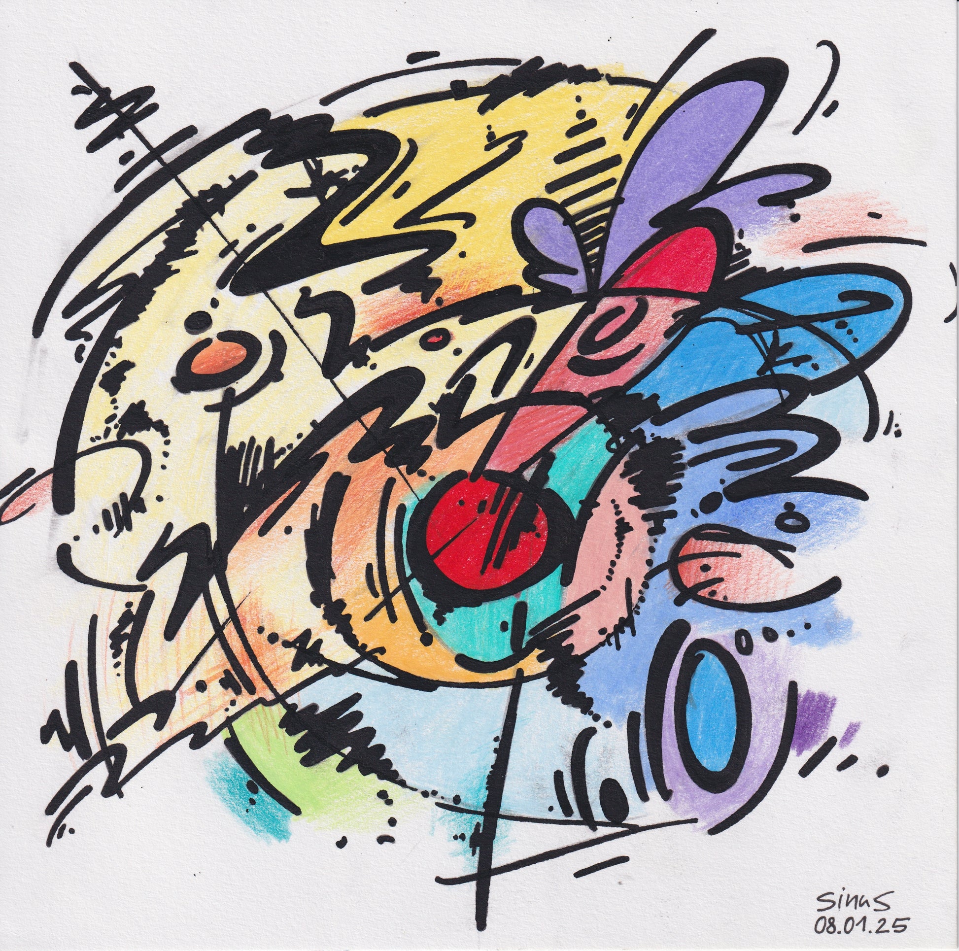 fineliner and colored pencil on paper
