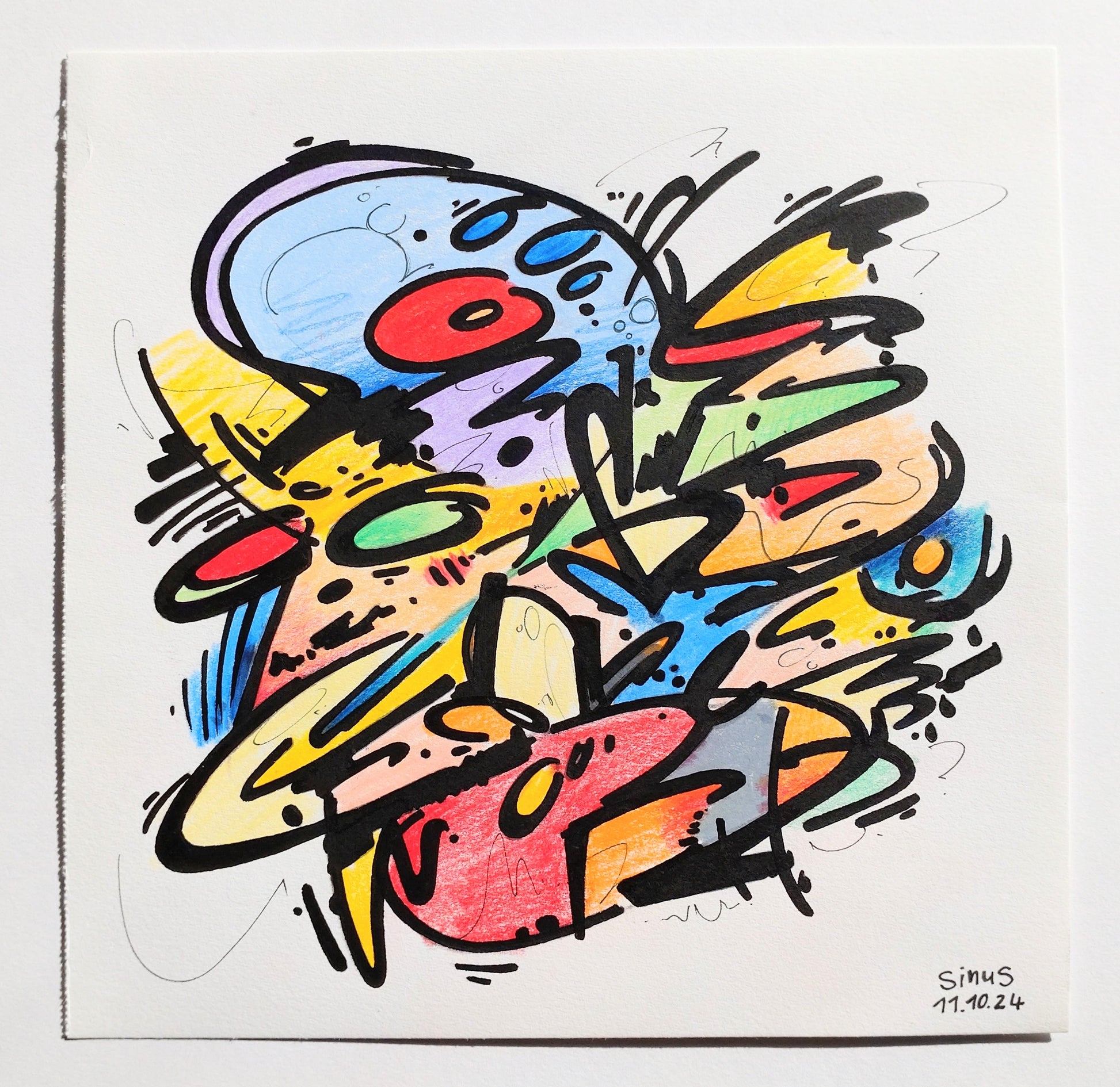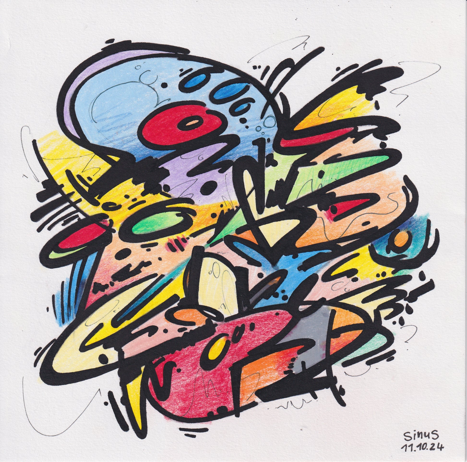 fineliner and colored pencil on paper