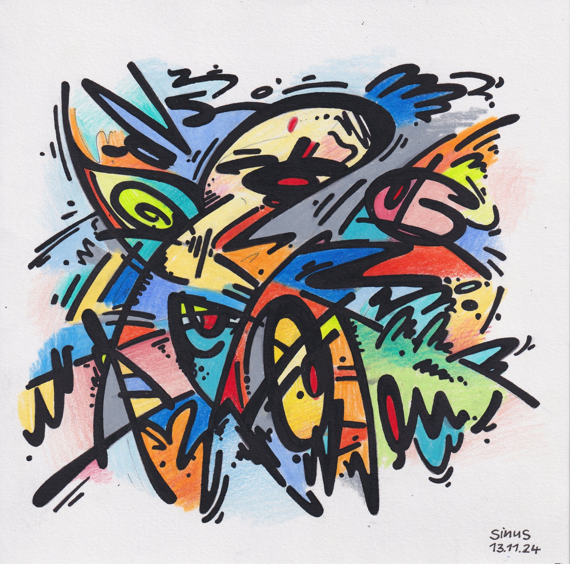 fineliner and colored pencil on paper