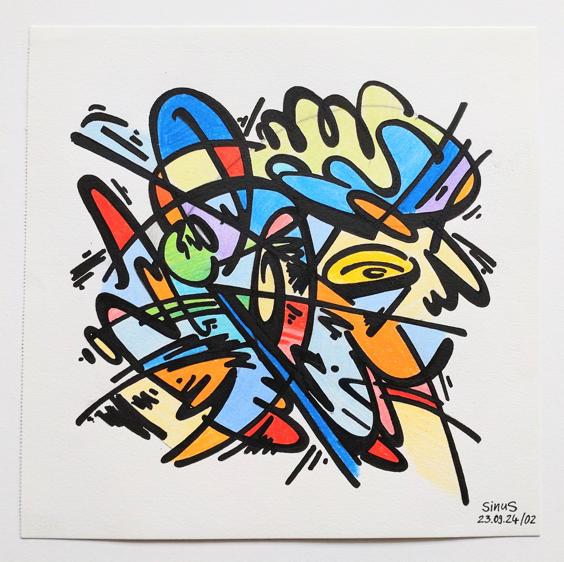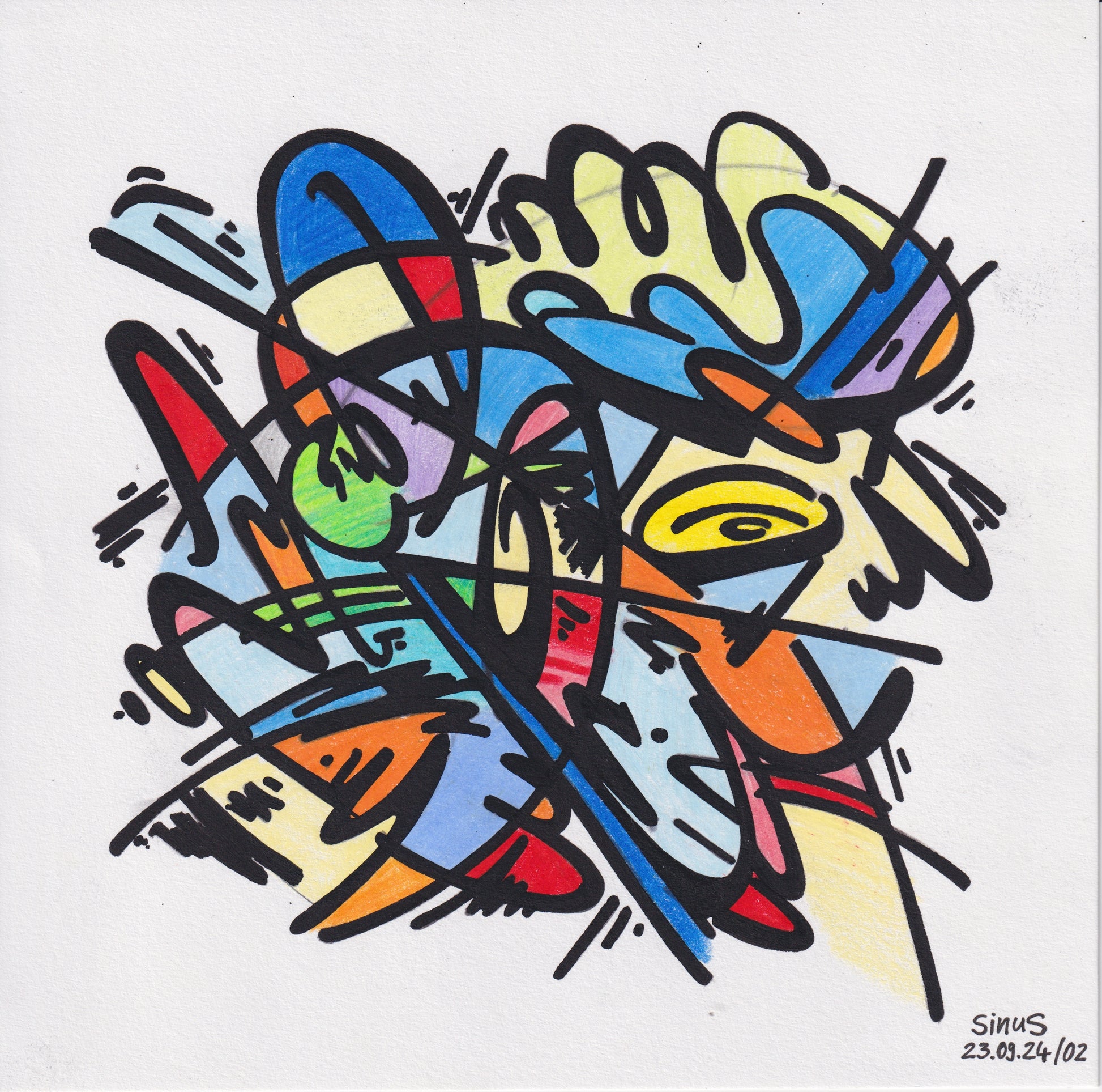 fineliner and colored pencil on paper