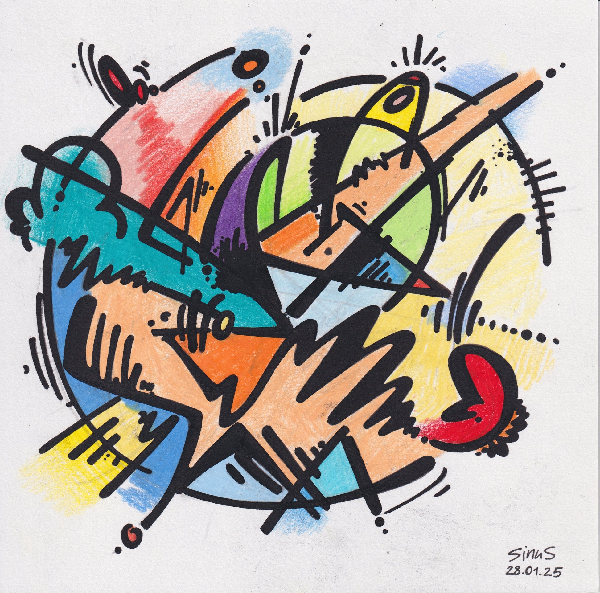 fineliner and colored pencil on paper
