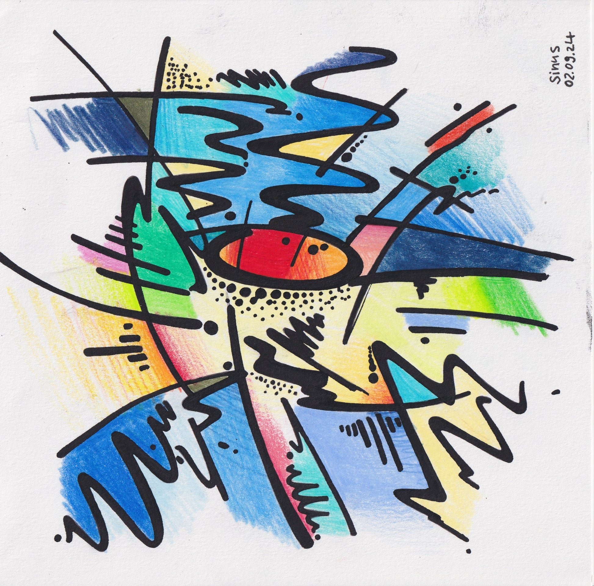fineliner and colored pencil on paper