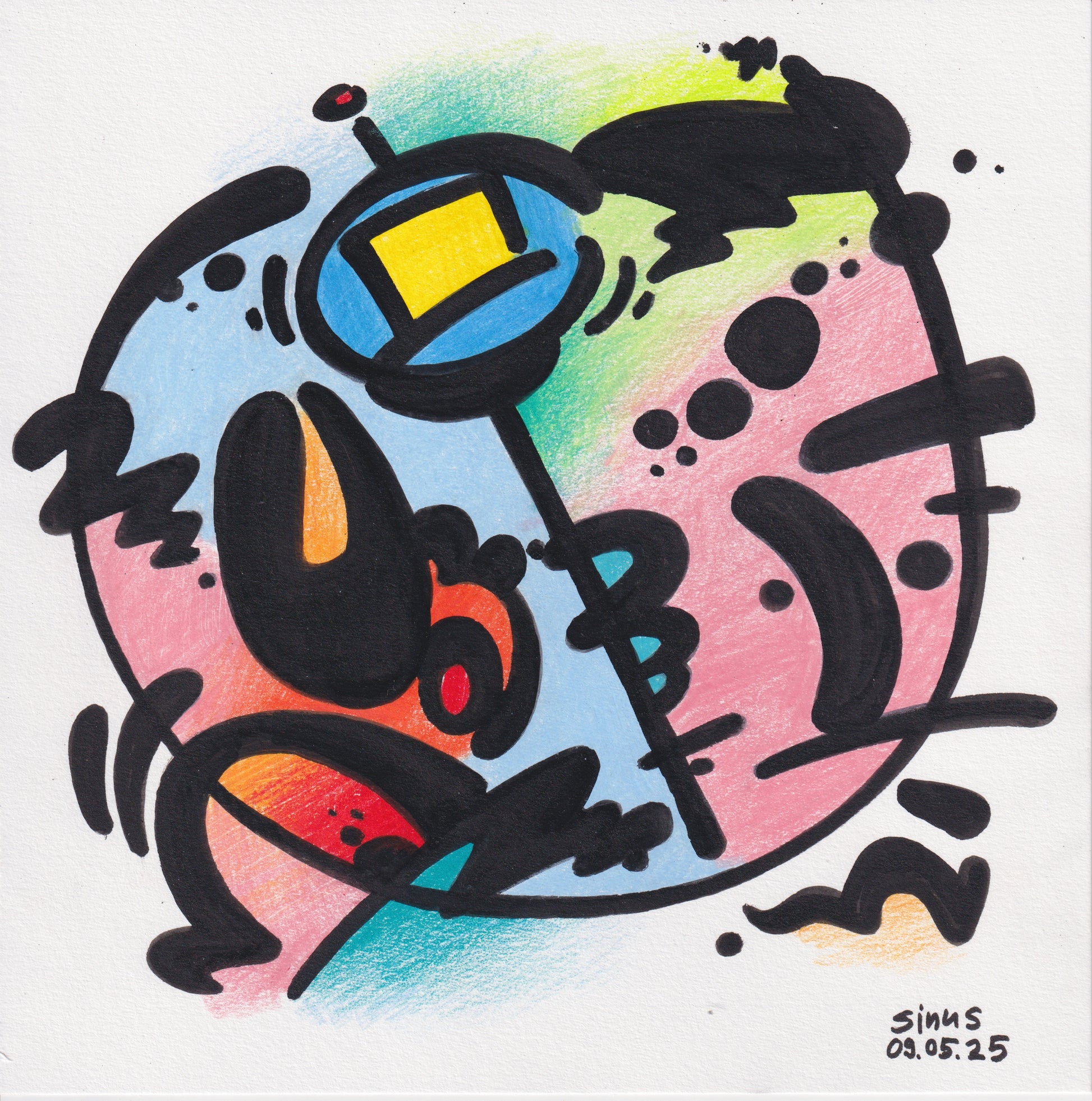acrylic ink and colored pencil (artist quality) on paper