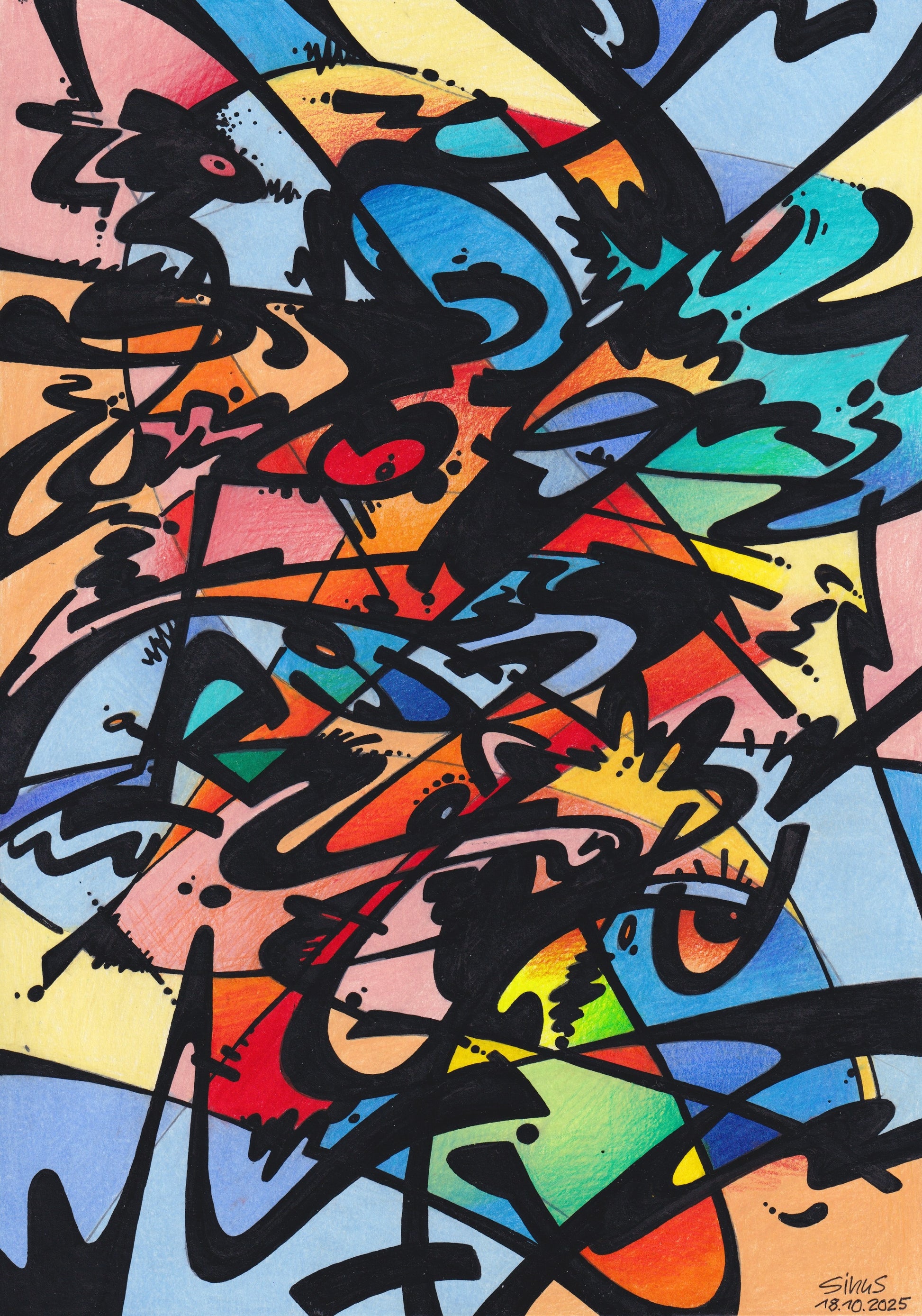 acrylic ink and colored pencil (artist quality) on paper