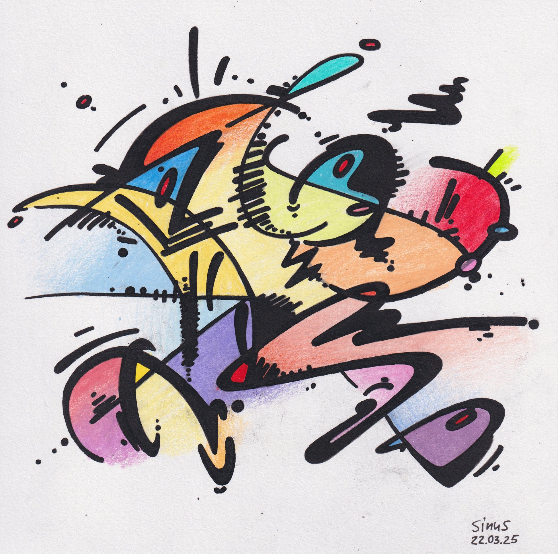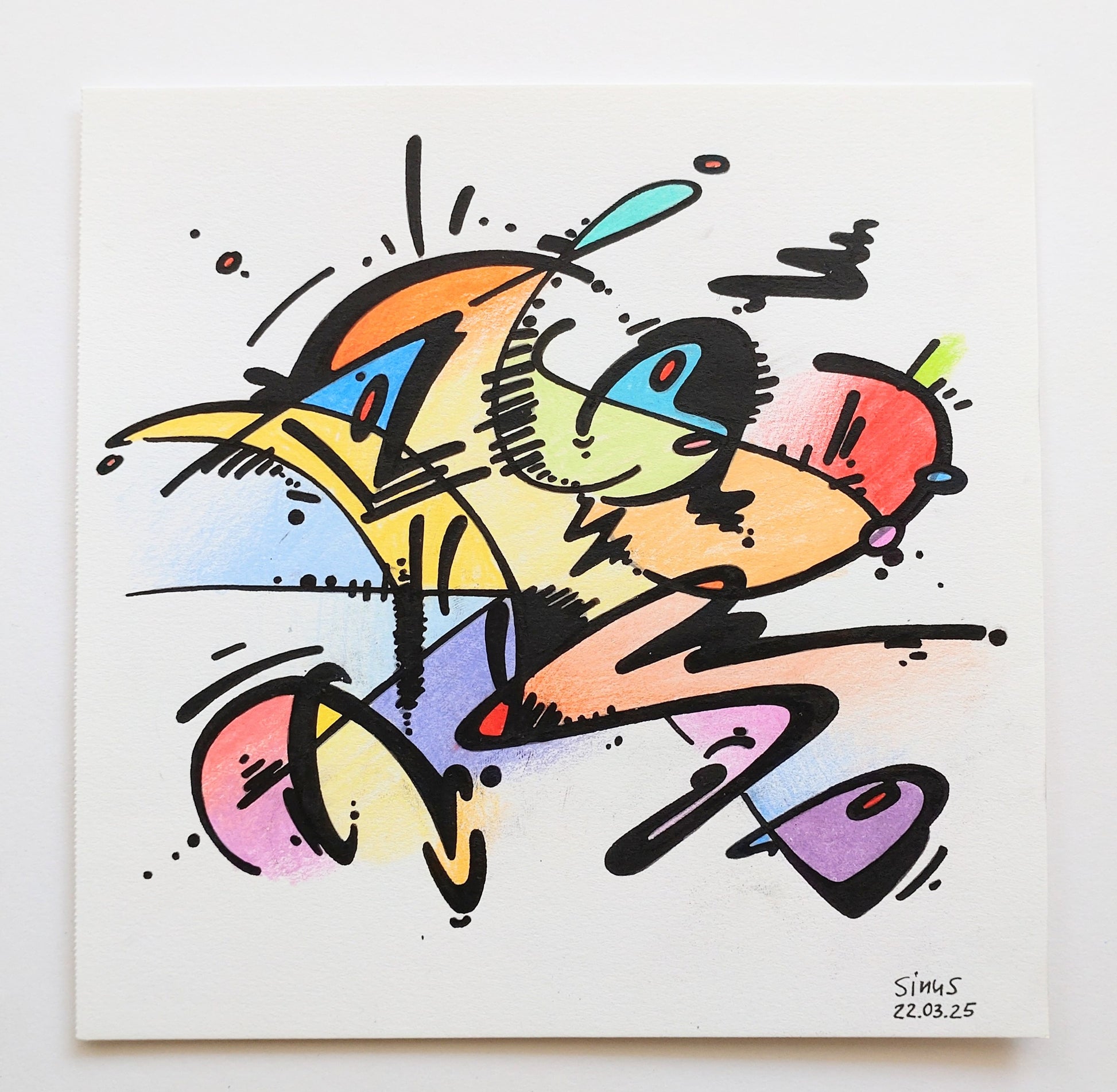 Rotulador fino, lápiz de color sobre cartulina de dibujo