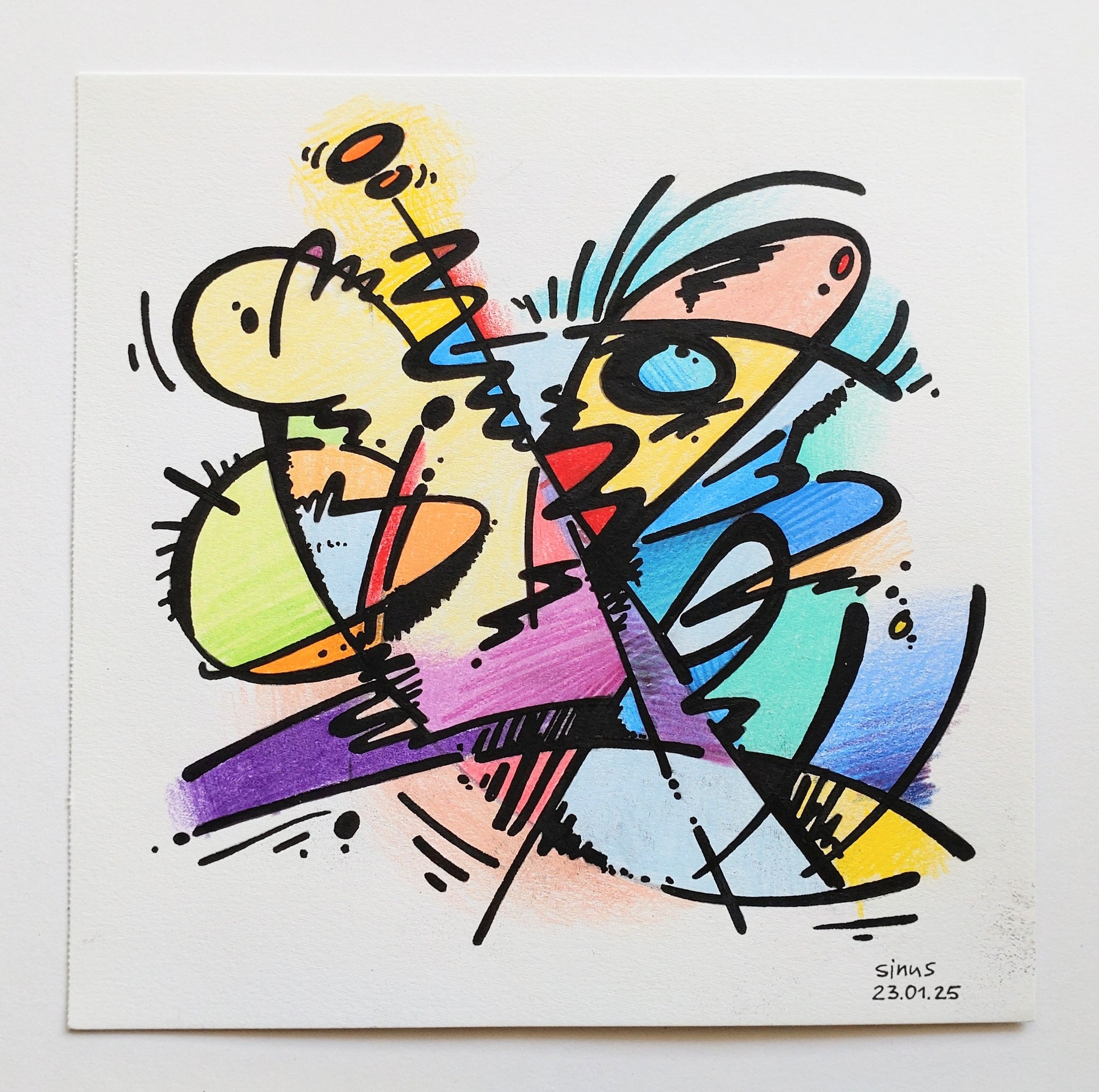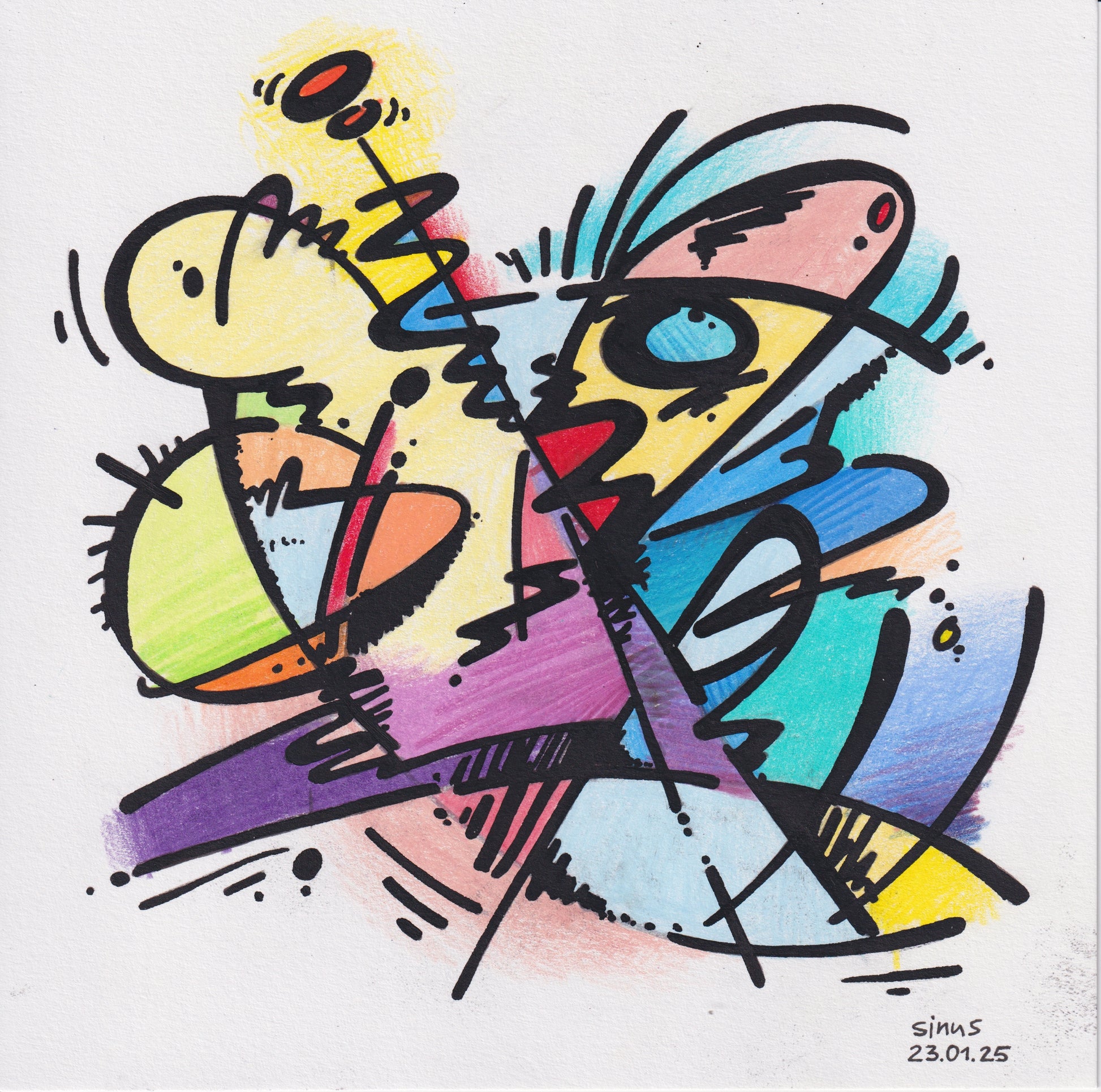 fineliner and colored pencil on paper