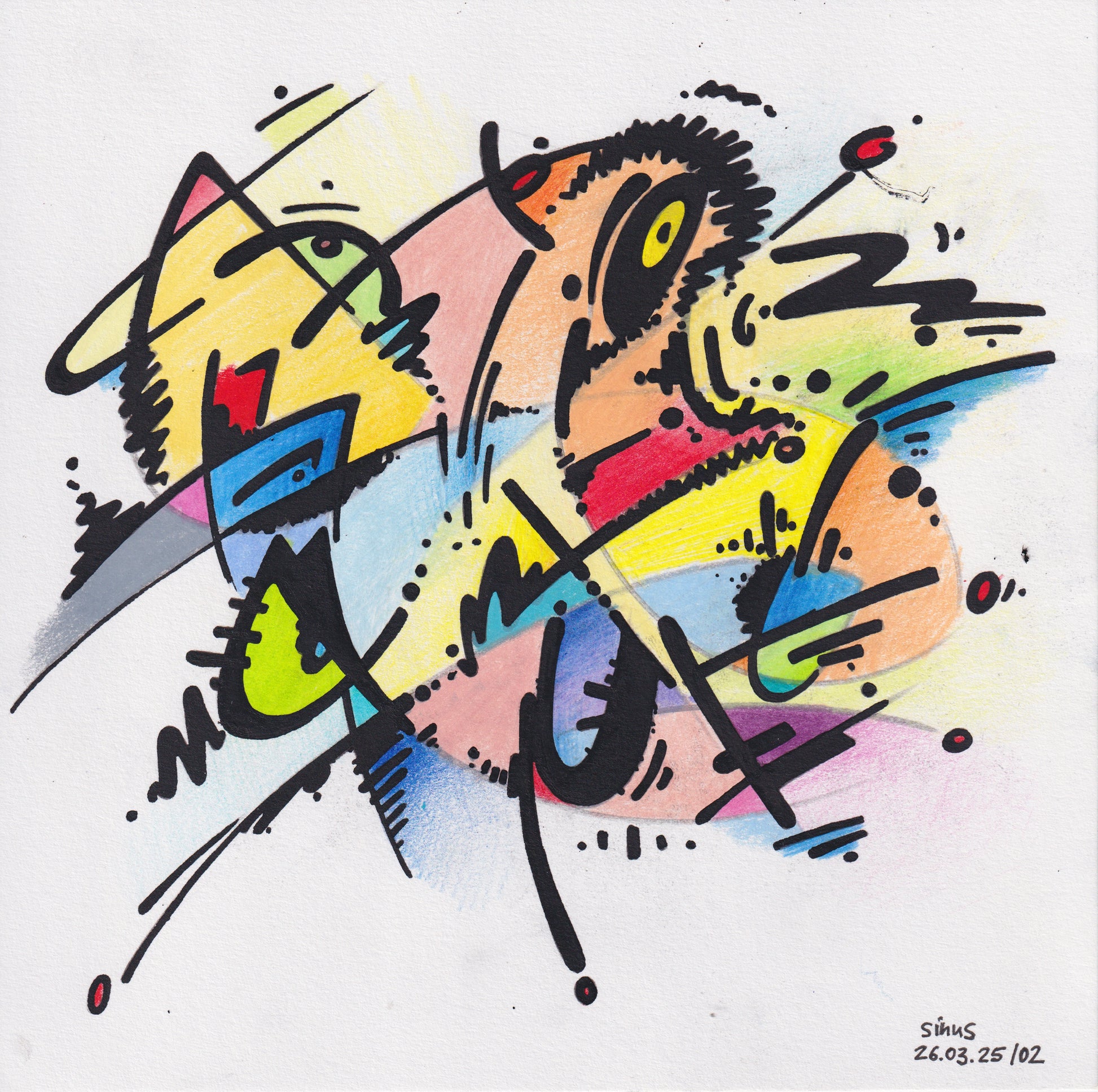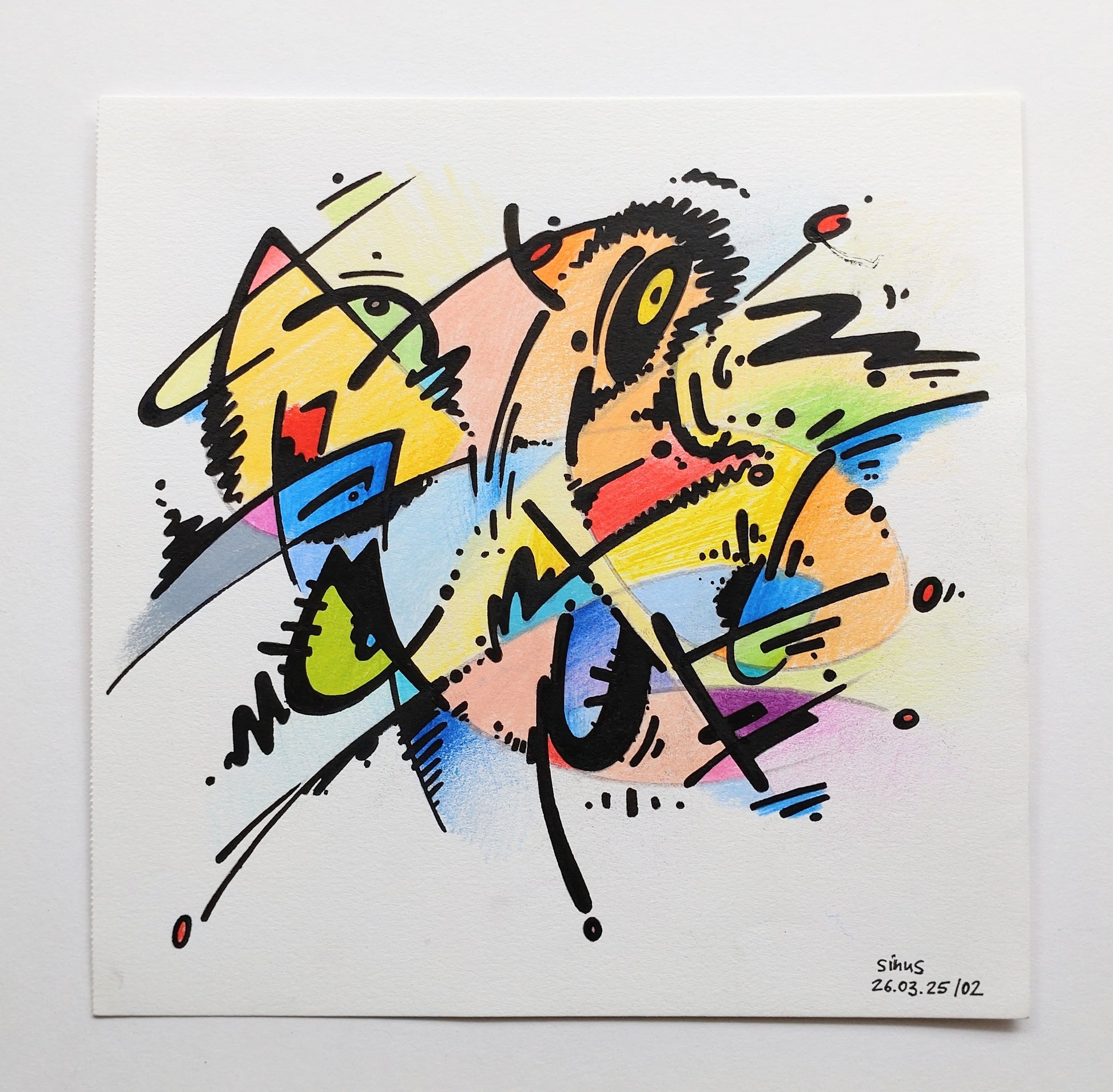 Rotulador fino, lápiz de color sobre cartulina de dibujo