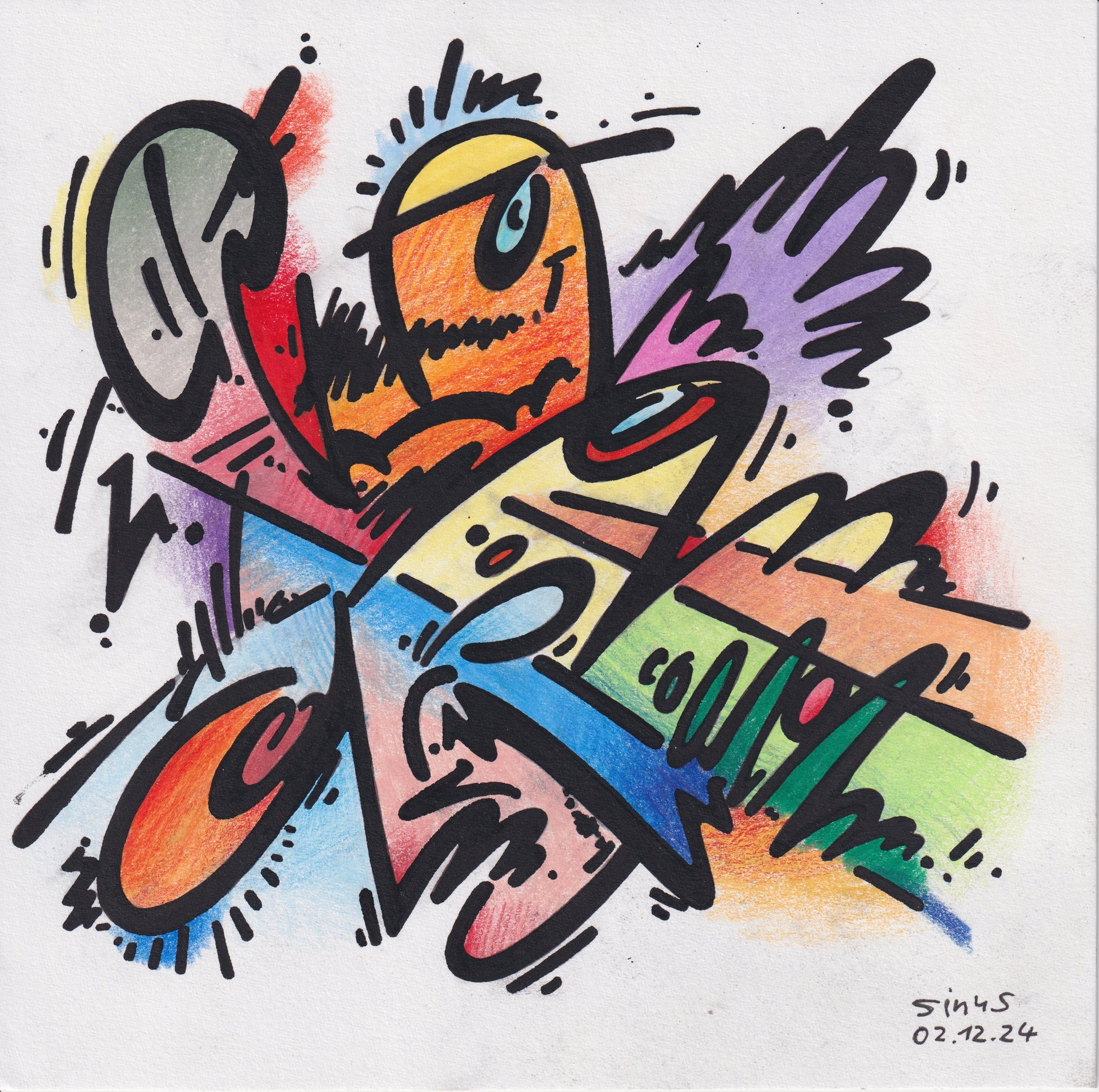 fineliner and colored pencil on paper