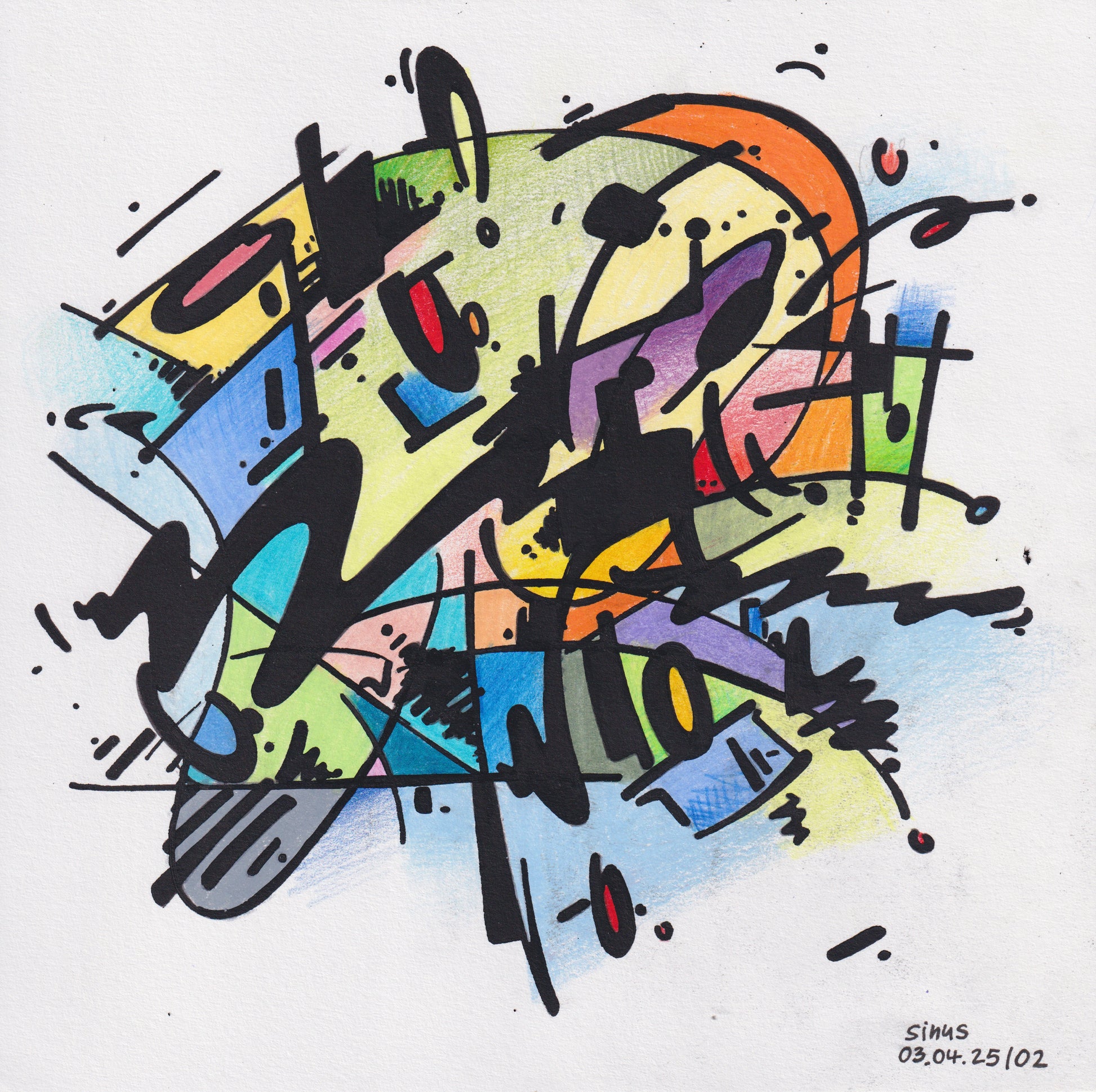 fineliner and colored pencil on paper