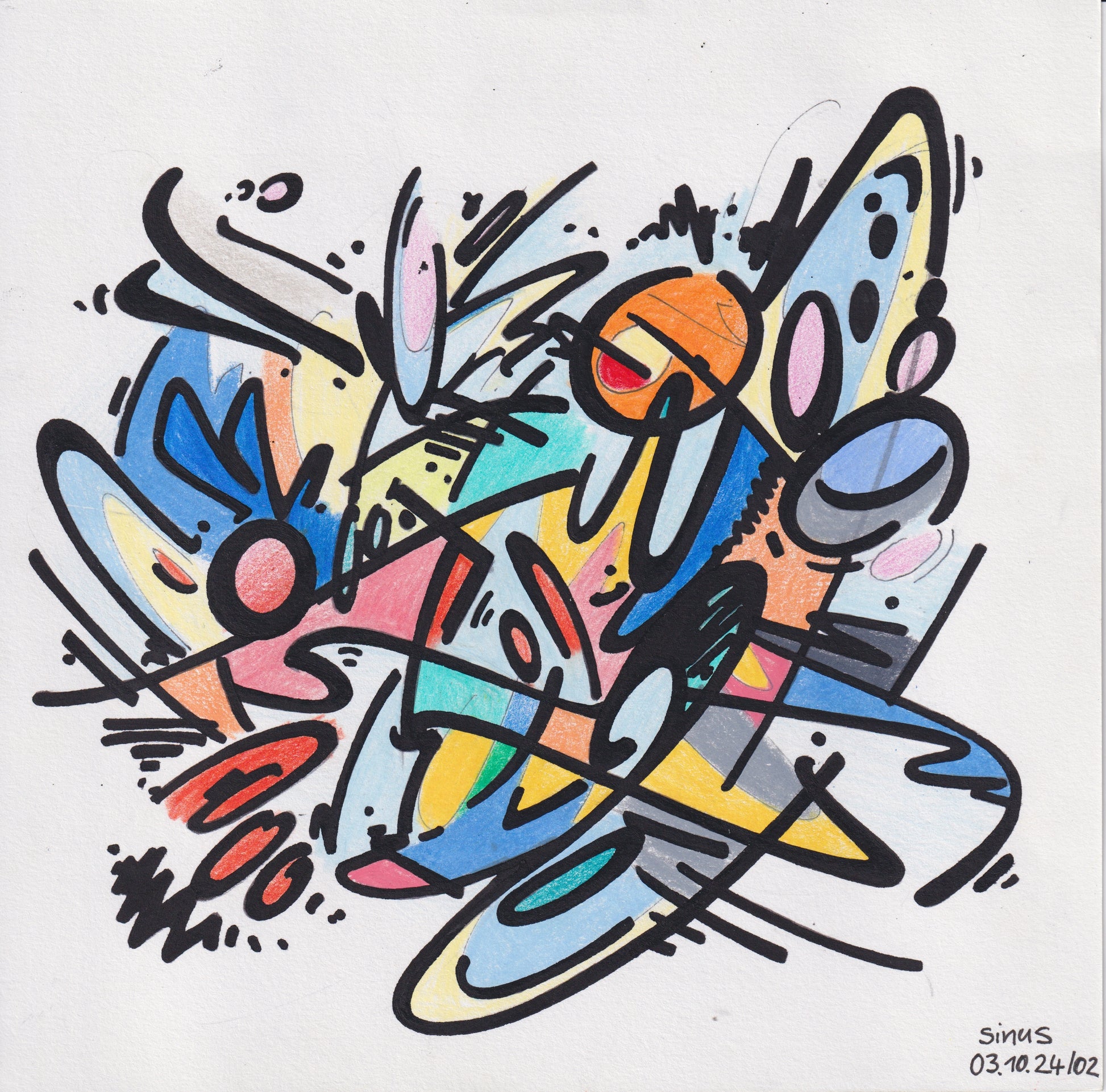 fineliner and colored pencil on paper
