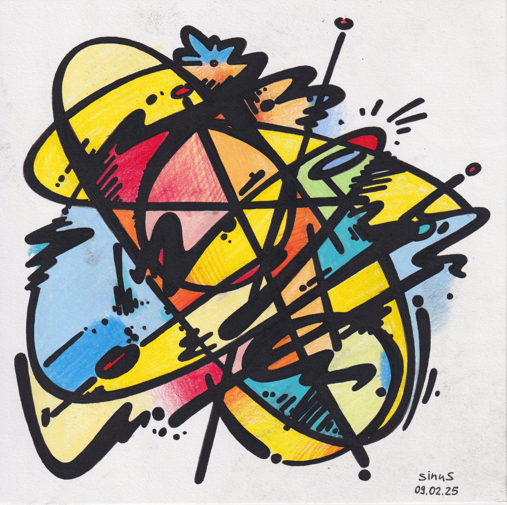 fineliner and colored pencil on paper
