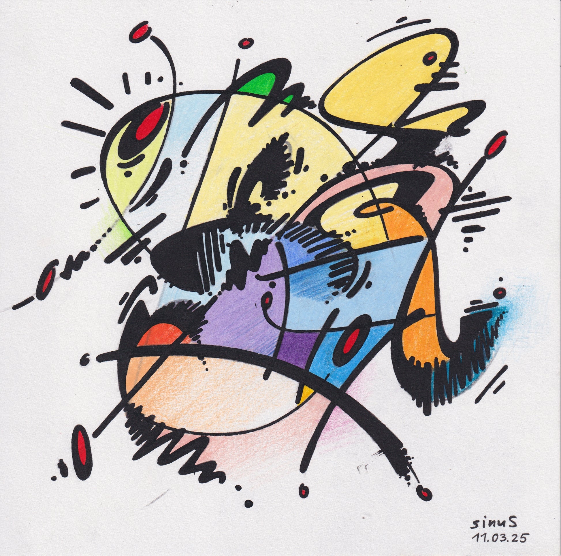 fineliner and colored pencil on paper