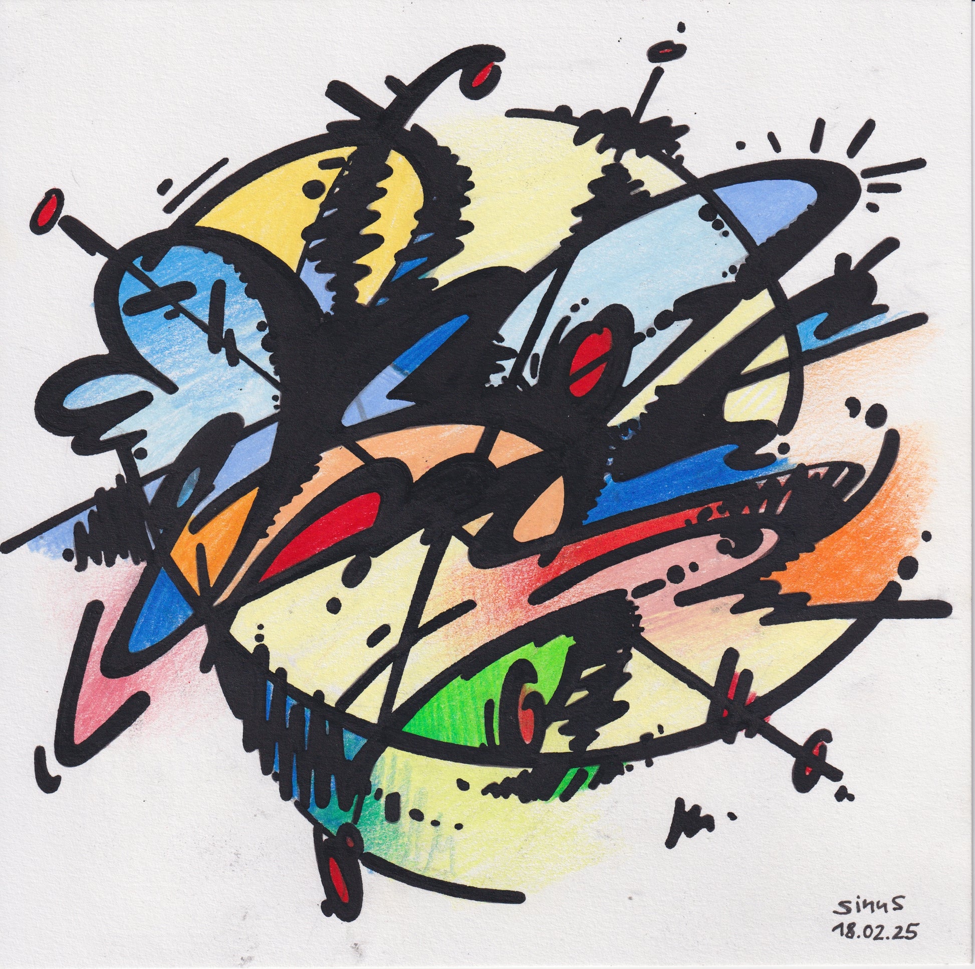 fineliner and colored pencil on paper