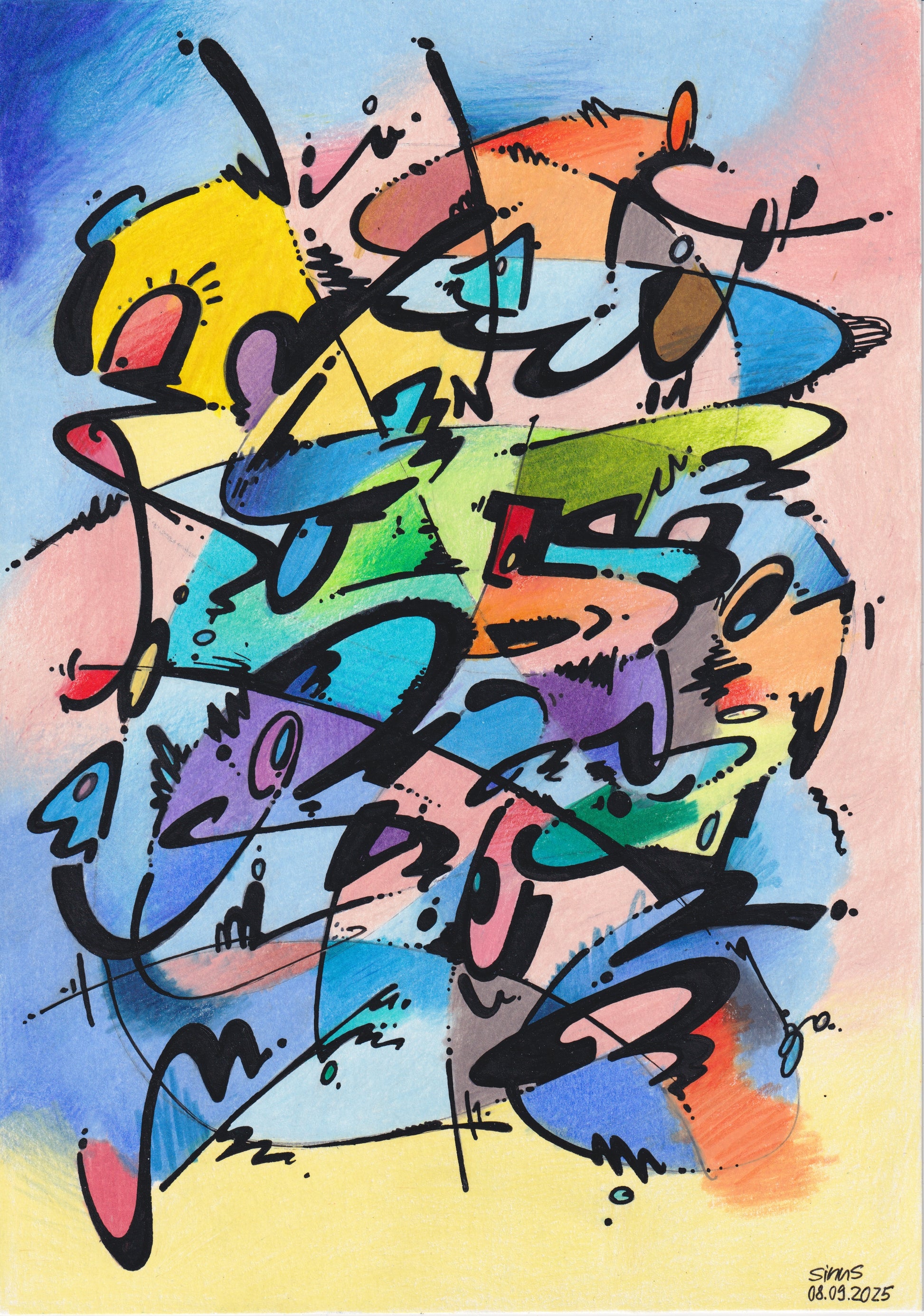 acrylic ink and colored pencil (artist quality) on paper
