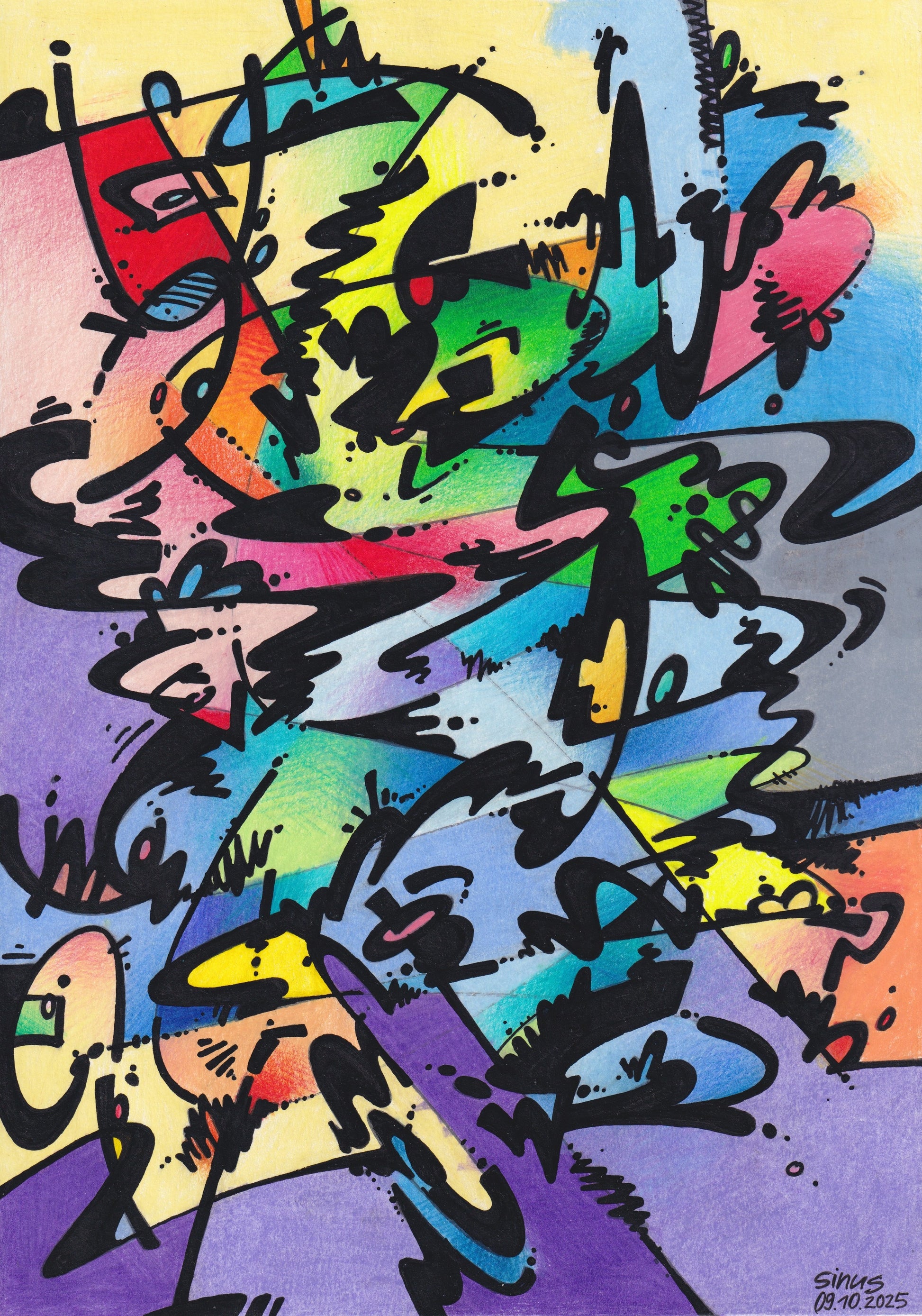 acrylic ink and colored pencil (artist quality) on paper