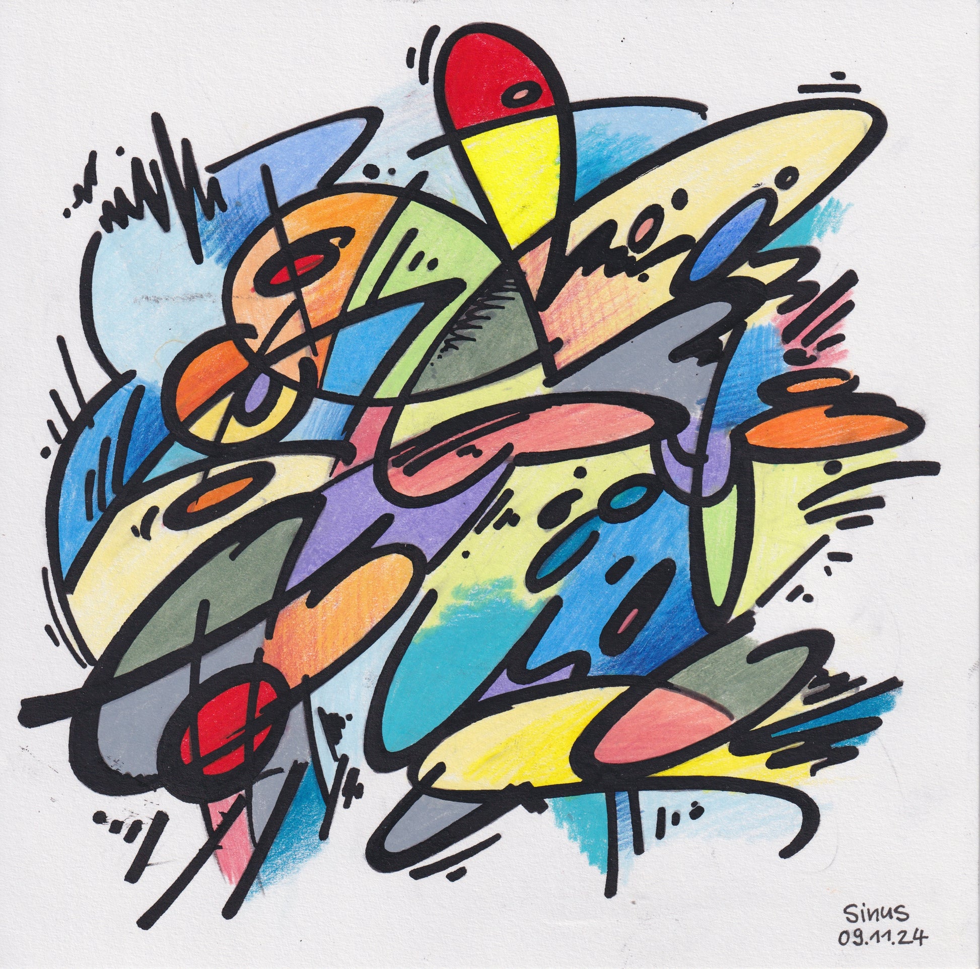 纸上细线笔和彩色铅笔
