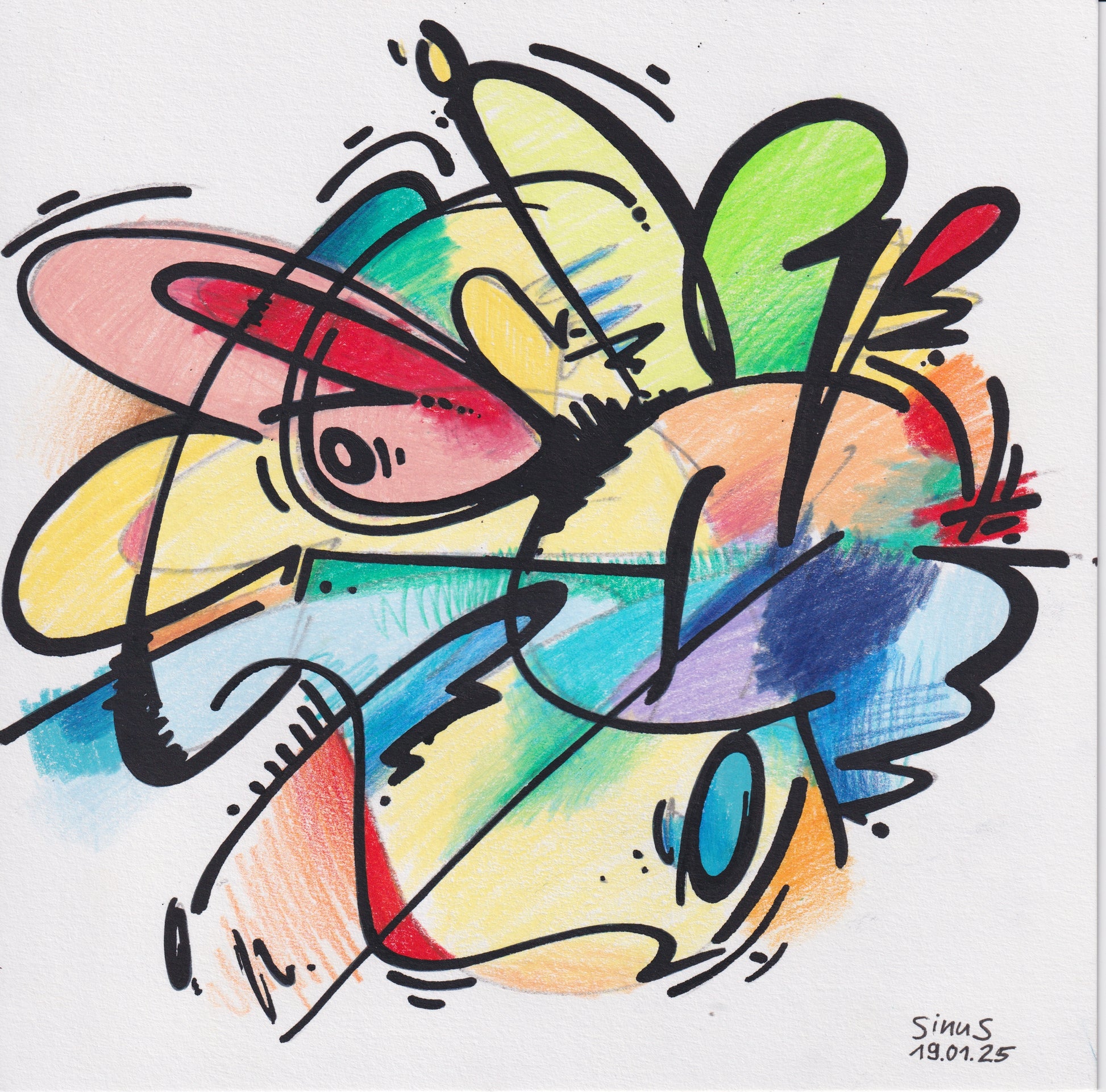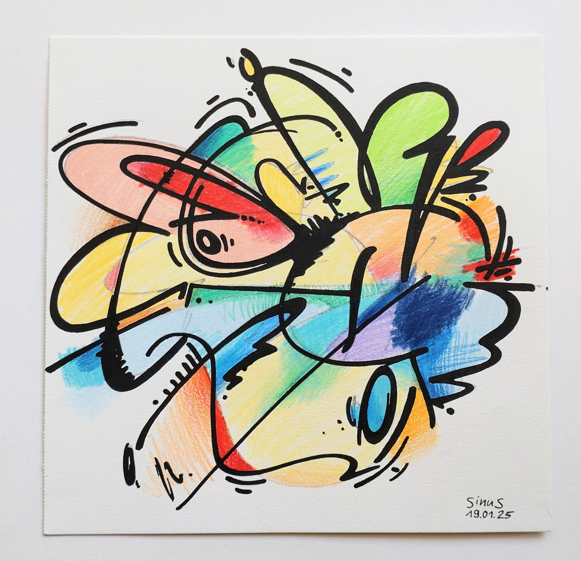 2025年6月10日 用细线笔在丙烯颜料上作画