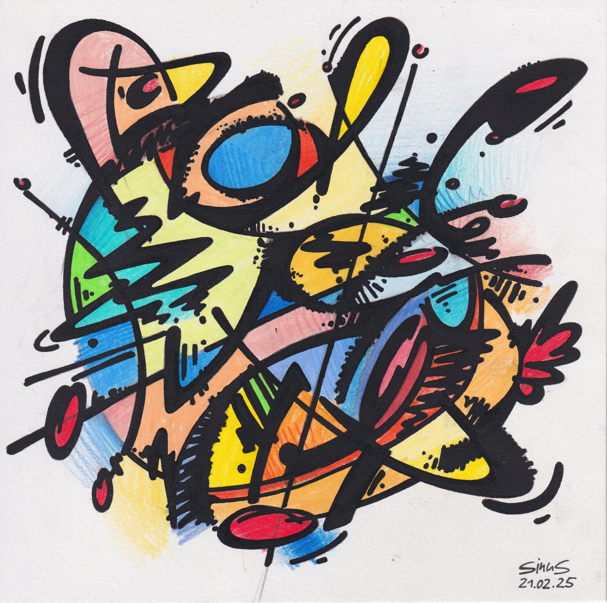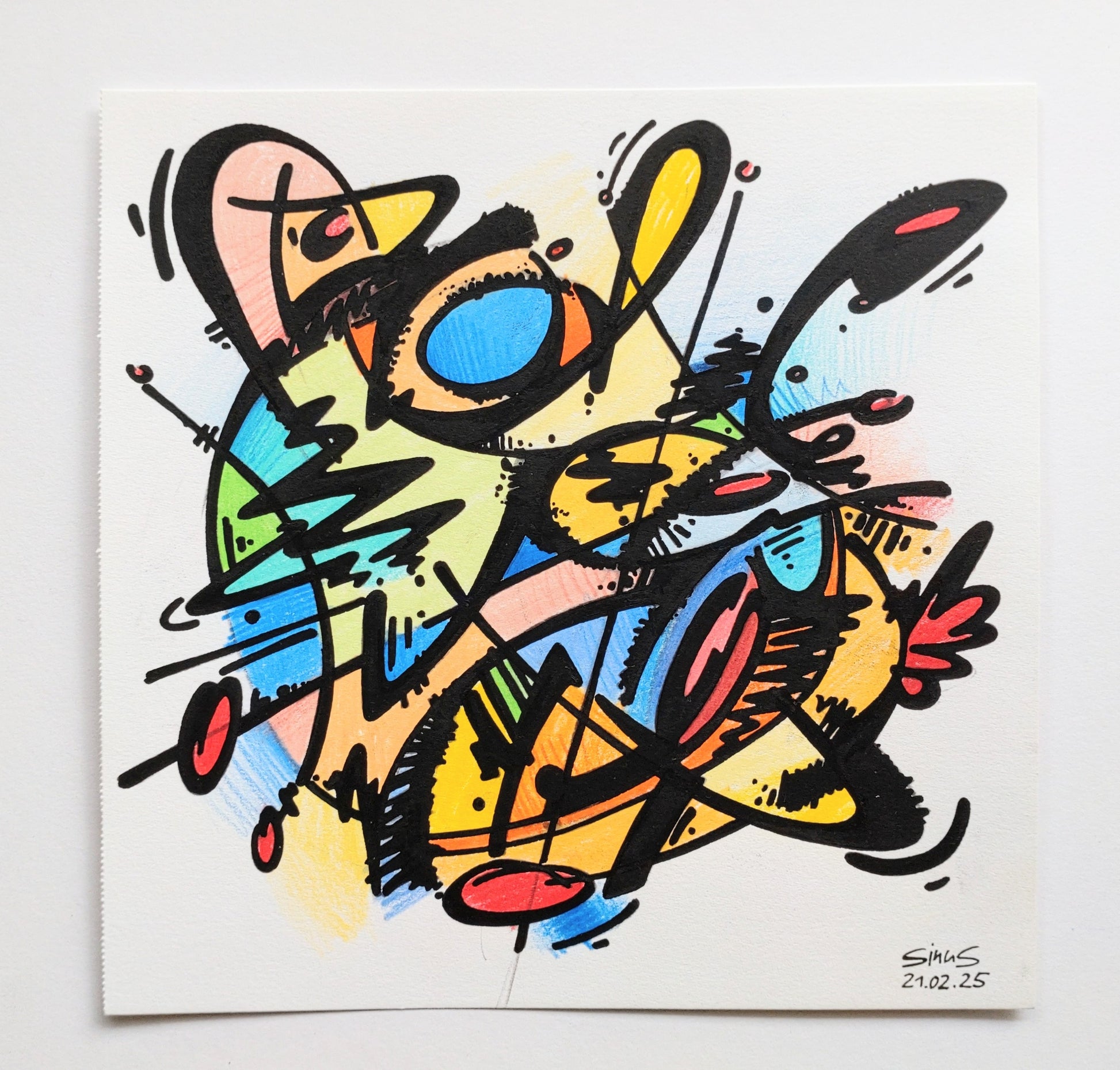2025年6月23日 用细线笔在丙烯颜料上作画