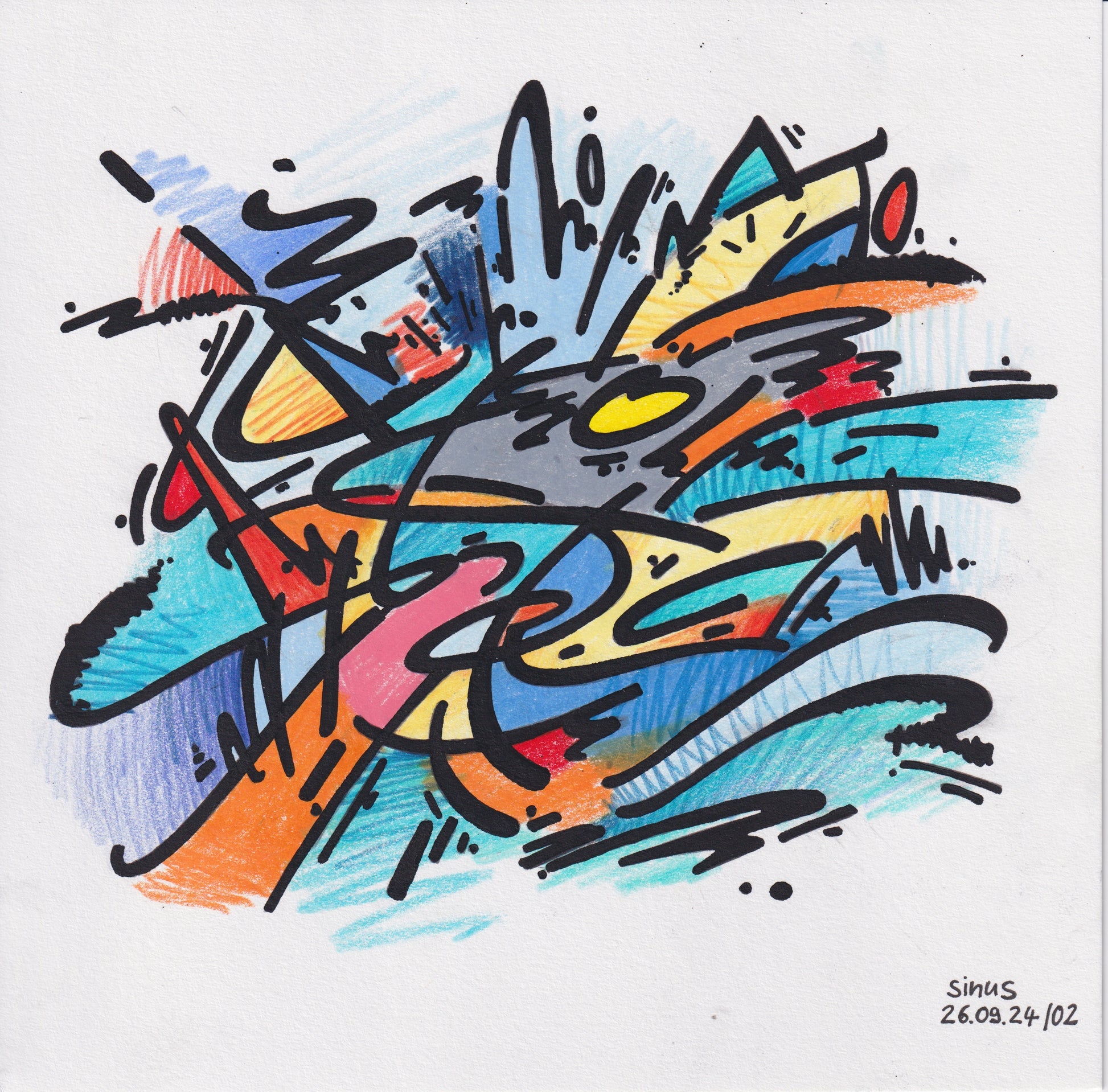 fineliner and colored pencil on paper