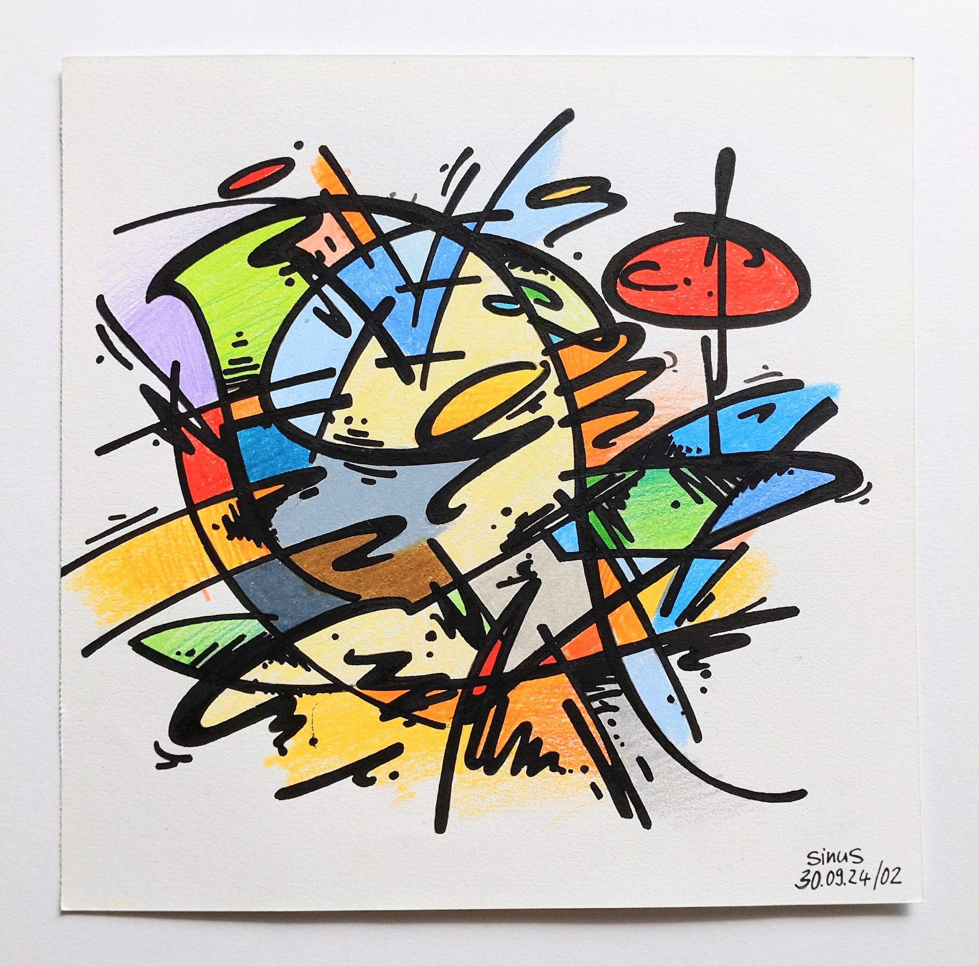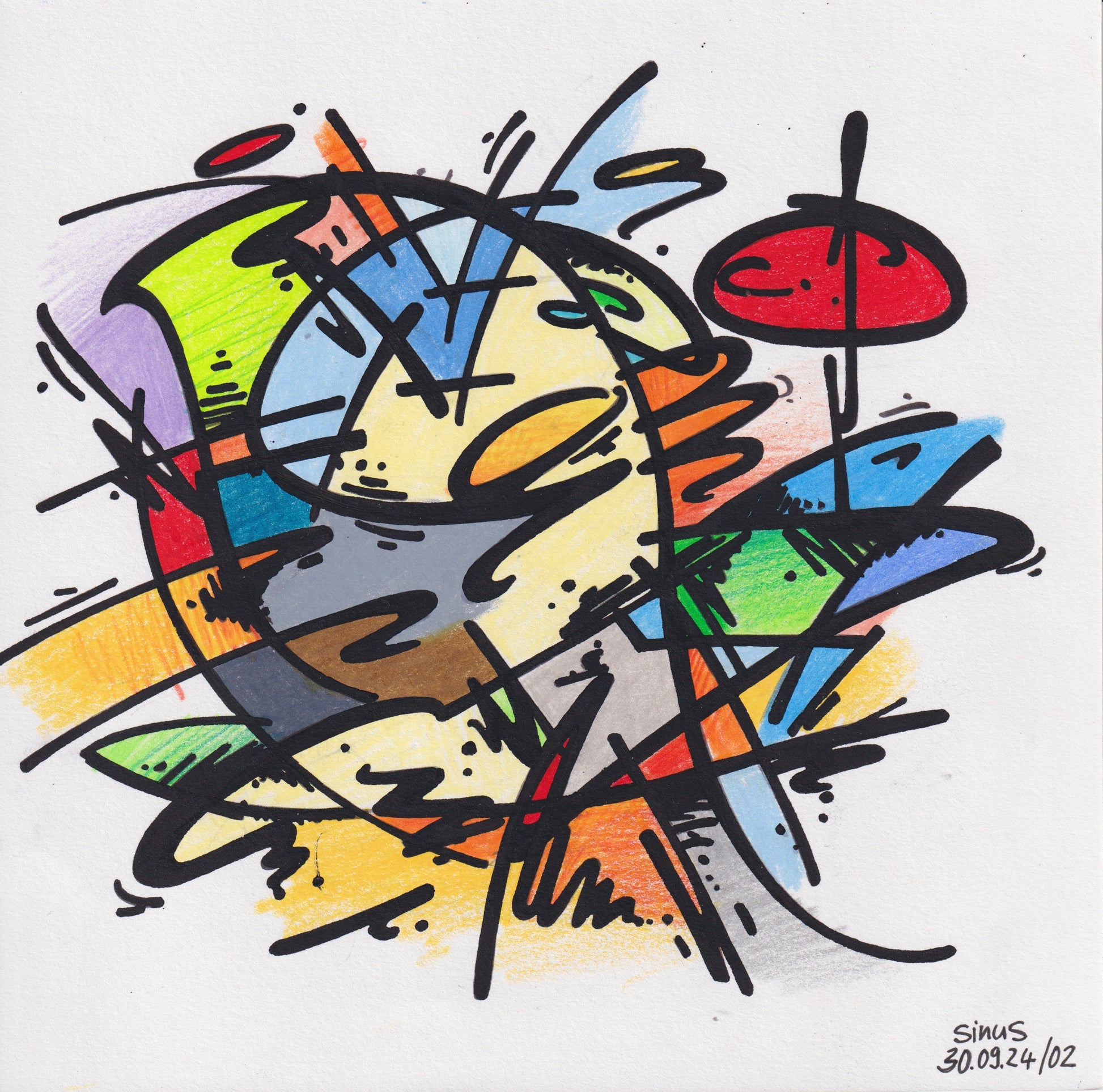 fineliner and colored pencil on paper