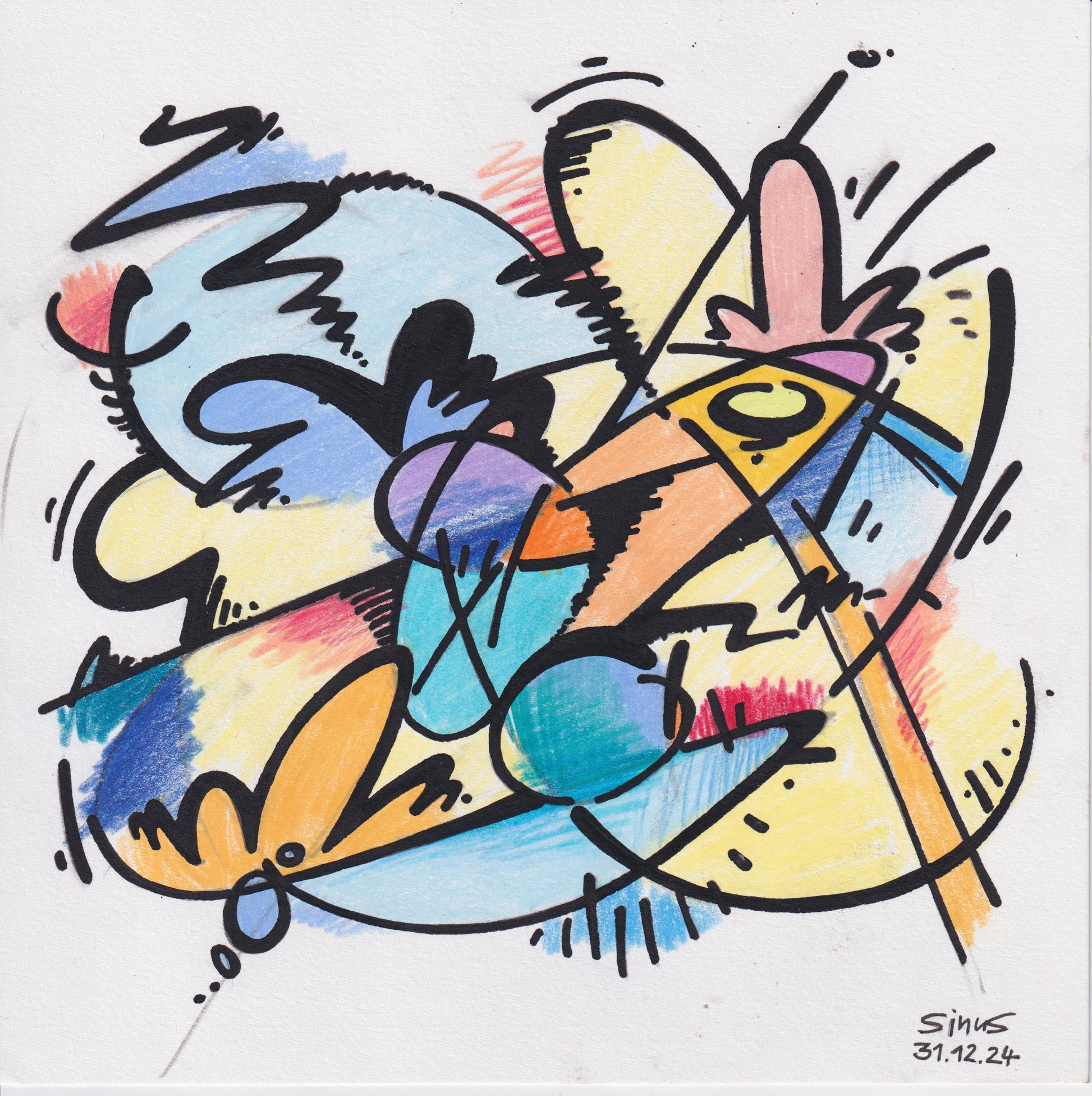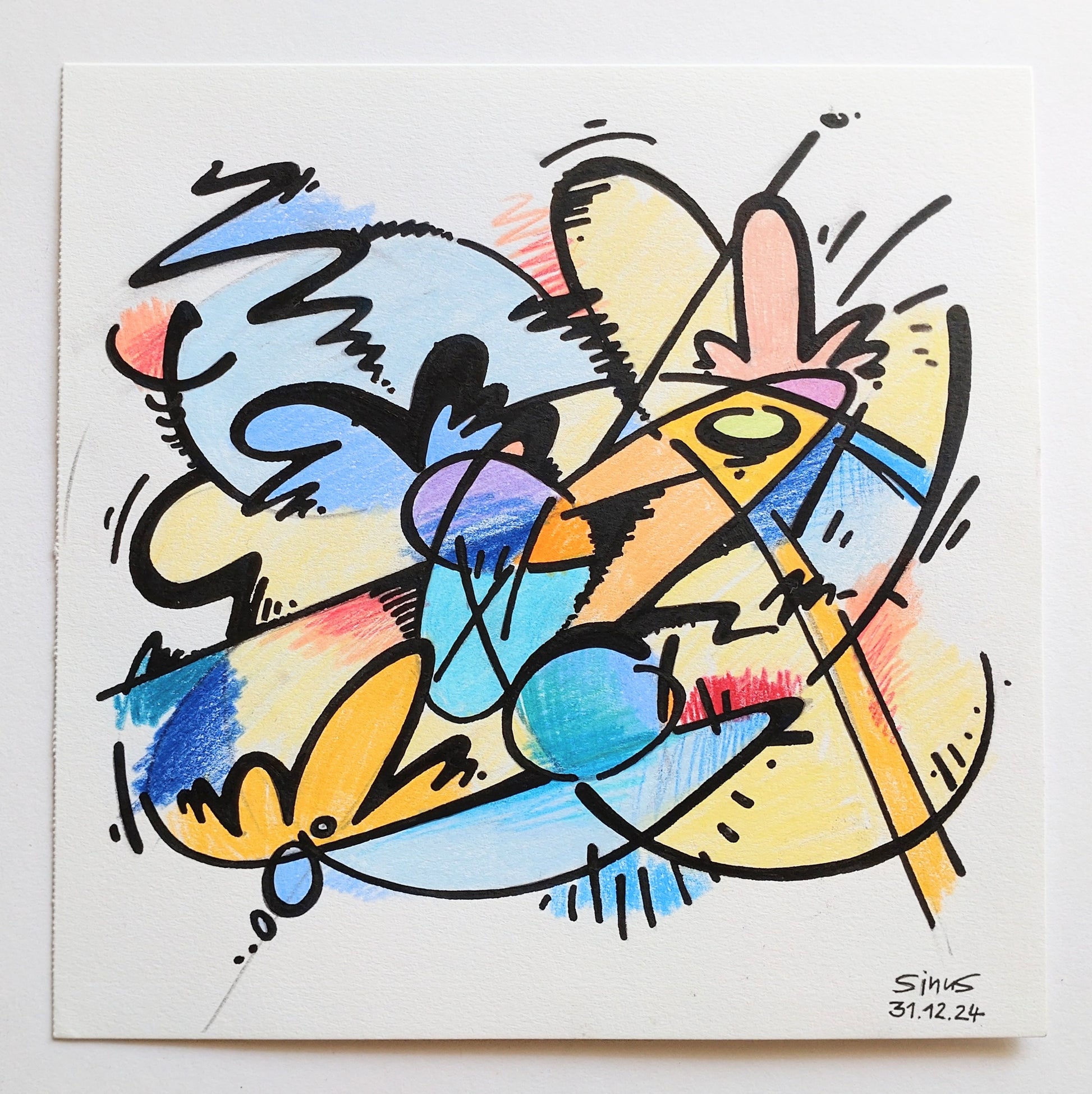 2024年12月31日 用细线笔在丙烯颜料上作画