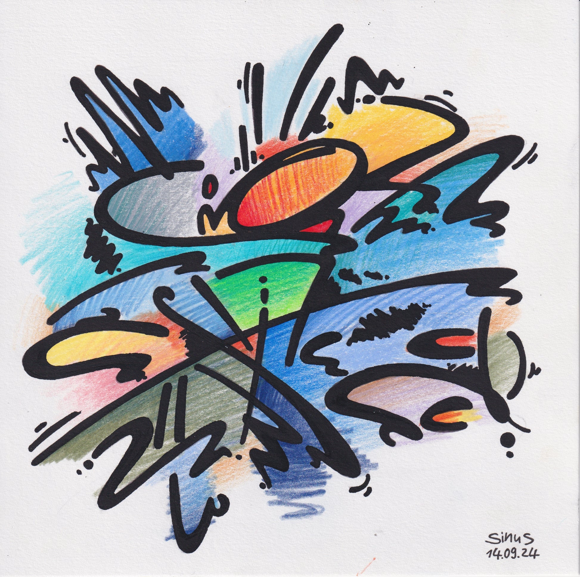 fineliner and colored pencil on paper